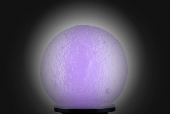 月球燈表面紋理凹凸不平,且細節(jié)設(shè)計繁復(fù),傳統(tǒng)工藝無法生產(chǎn)制造出高逼真程度的月球燈。而3D打印工藝通過對燈罩厚薄的精準控制來改變透光率,從而展現(xiàn)出月球表面陰影和紋理的變化,最終成品無論從表面細膩程度還是燈罩透光率,都呈現(xiàn)出極為生動的效果。
