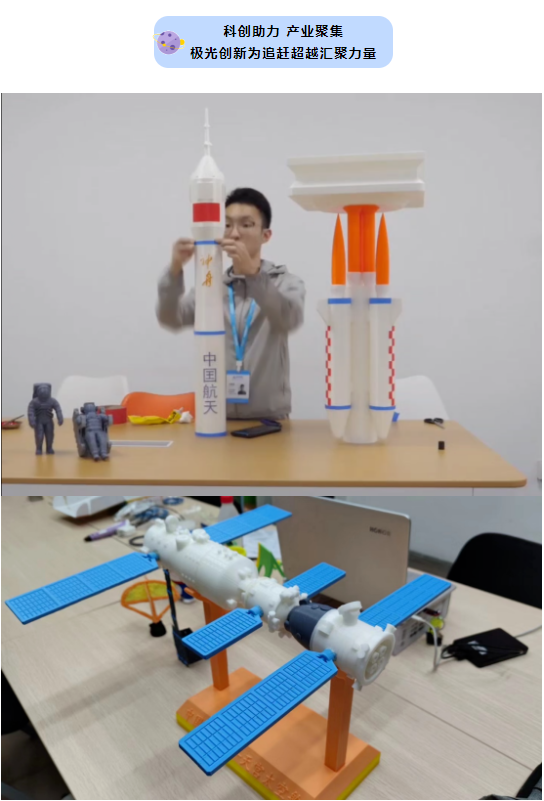 飛天夢,極光夢!極光創(chuàng)新小伙伴在獲悉神舟十五號載人飛船即將發(fā)射之際,極光創(chuàng)新3D打樣團(tuán)隊(duì)利用工業(yè)級A8S/A9Pro等工業(yè)級3D打印設(shè)備,花費(fèi)3天3夜不間斷打印,終于在神舟十五號飛船發(fā)射之際,完成了空間站組合體的打印及裝配工作,用于祝賀我國航天產(chǎn)業(yè)取得的諸多技術(shù)性突破,同時也祝賀祖國在空間站建設(shè)方面實(shí)現(xiàn)了超越傳統(tǒng)空間站技術(shù)水平的高速發(fā)展。