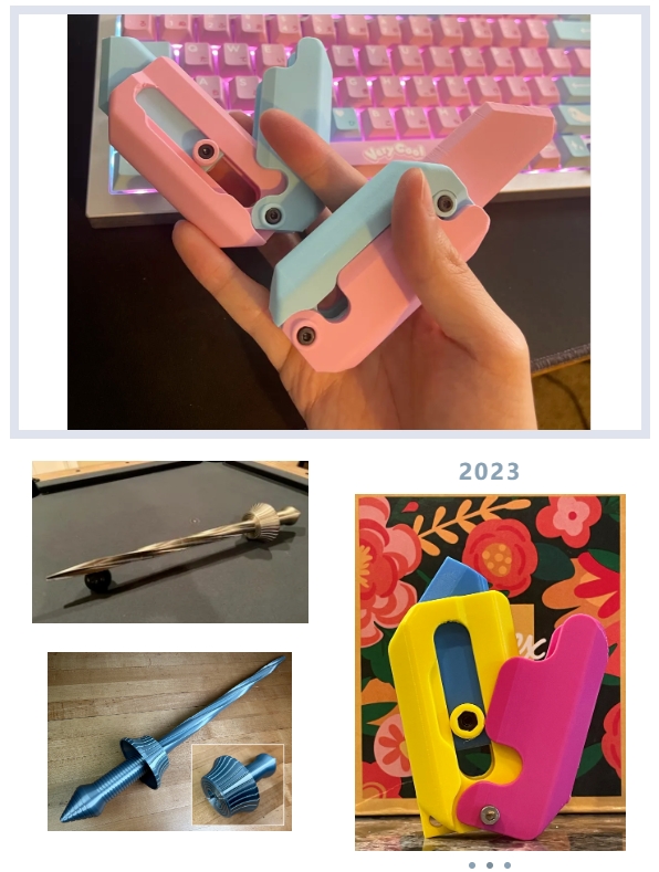 近期我們也對2023年最受歡迎的3D打印模型做了匯總,不出意外,碧云龍、蘿卜刀、蝴蝶刀、伸縮劍等,都在其列。