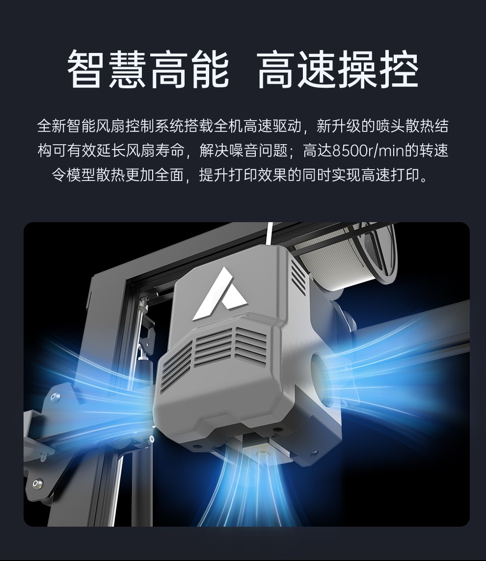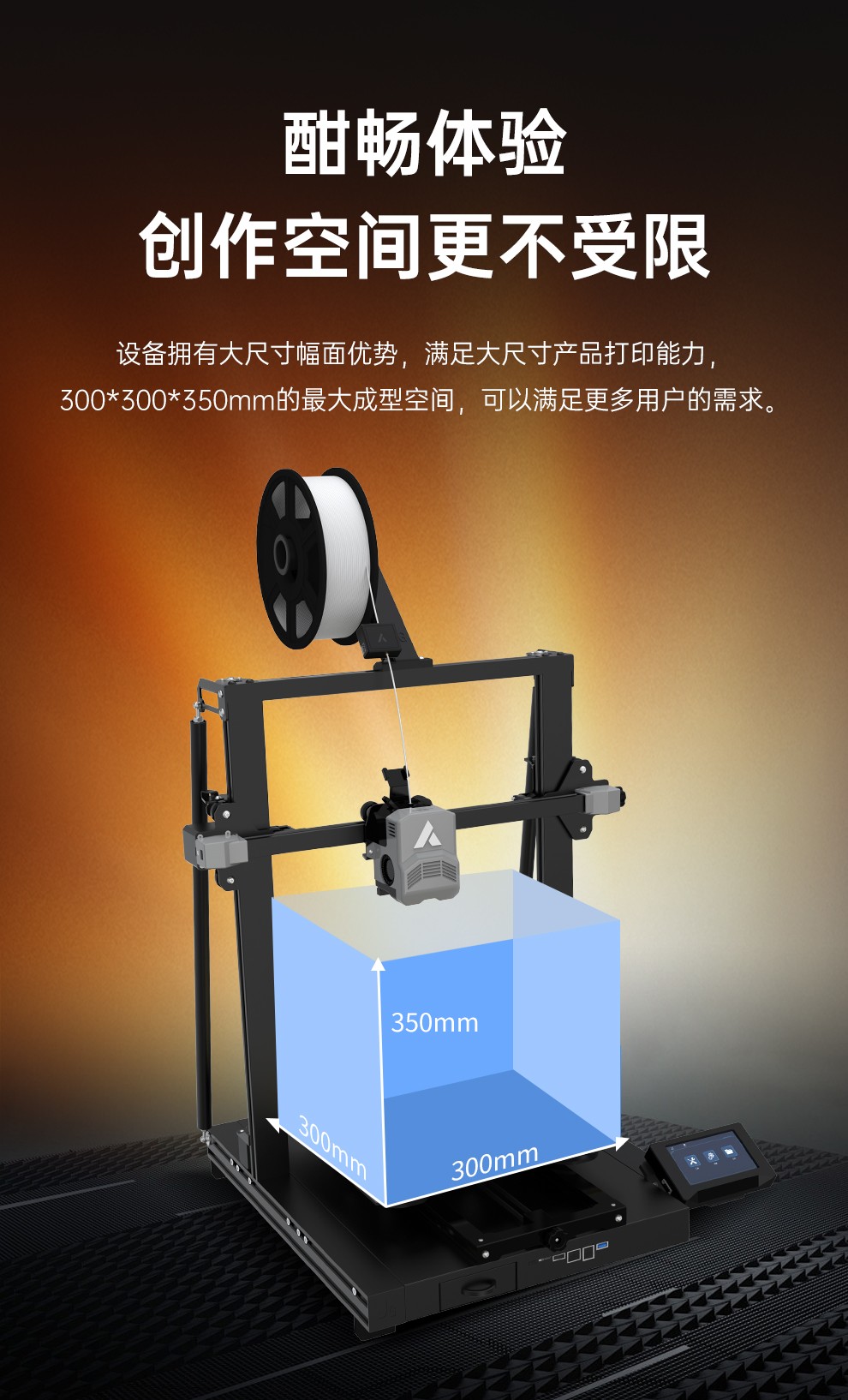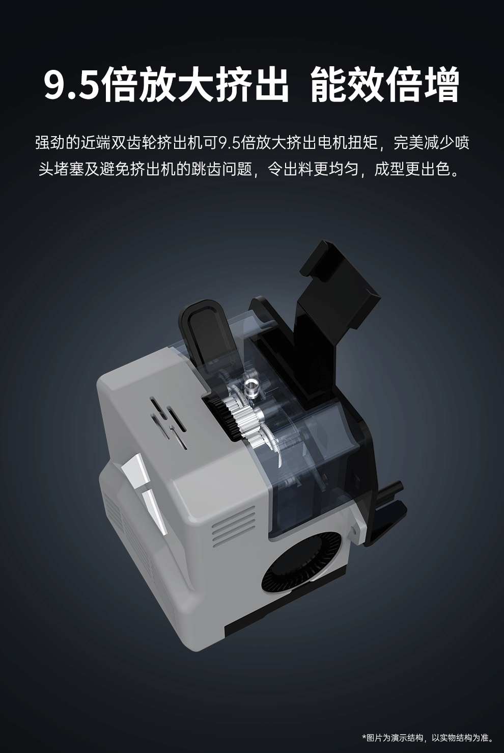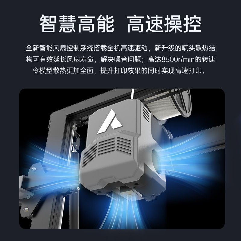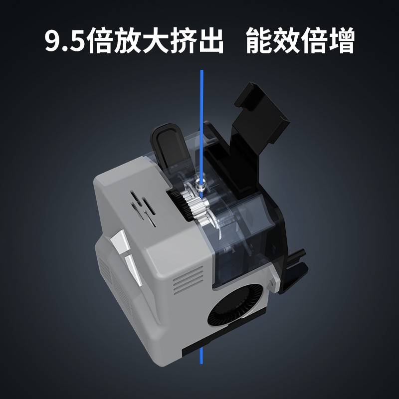 300*300*350mm最大成型空間·9.5倍放大擠出,使出料更均勻,成型更出色,搭載智能風扇控制系統(tǒng),讓高達8500r/min的轉(zhuǎn)速降低噪音,還可以模型散熱更全面的同時高速打印