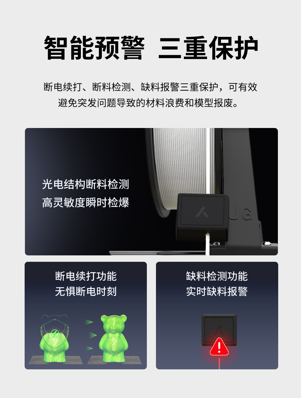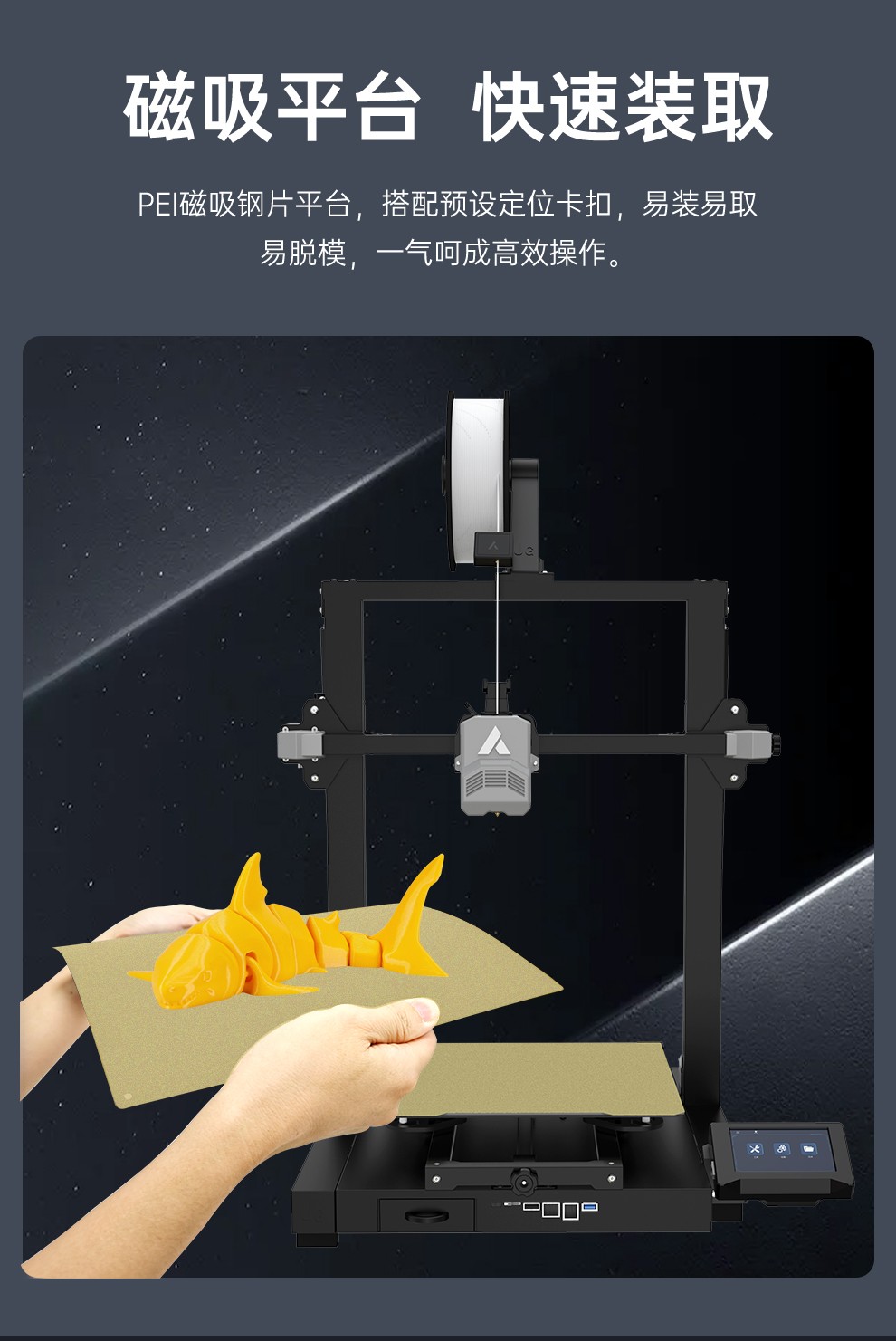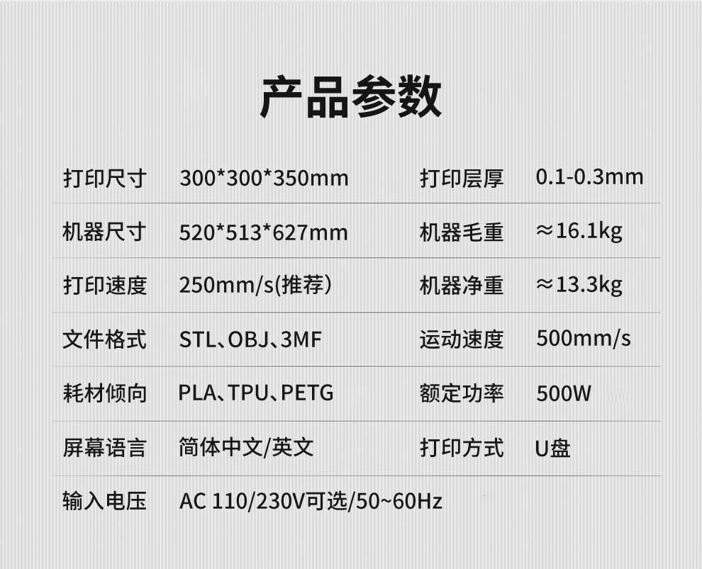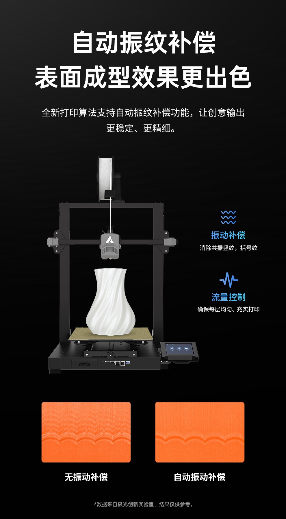 300*300*350mm最大成型空間·9.5倍放大擠出,使出料更均勻,成型更出色,搭載智能風扇控制系統(tǒng),讓高達8500r/min的轉(zhuǎn)速降低噪音,還可以模型散熱更全面的同時高速打印