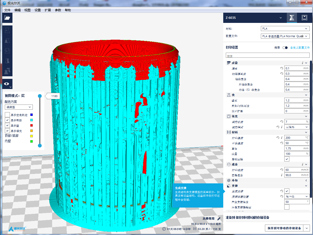切片軟件一般是支持手動增加支撐和自動添加支撐的。自動添加支撐,系統(tǒng)會根據(jù)您所要打印的模型自動判斷在某些部位添加支撐物。
