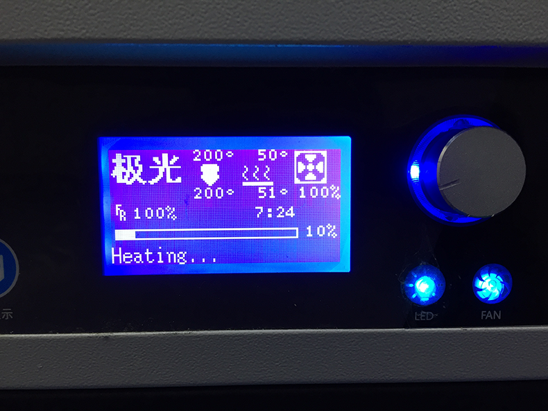 最后我們要設(shè)定打印頭及打印板的溫度,早先的機(jī)器我們一般需要事先將其加熱到一定溫度,進(jìn)入一個預(yù)備打印的狀態(tài),而現(xiàn)在的機(jī)型打印頭大多能夠迅速升溫,所以我們一般不需要“預(yù)加溫”這一過程,不過還是要事先設(shè)定好一個溫度。
