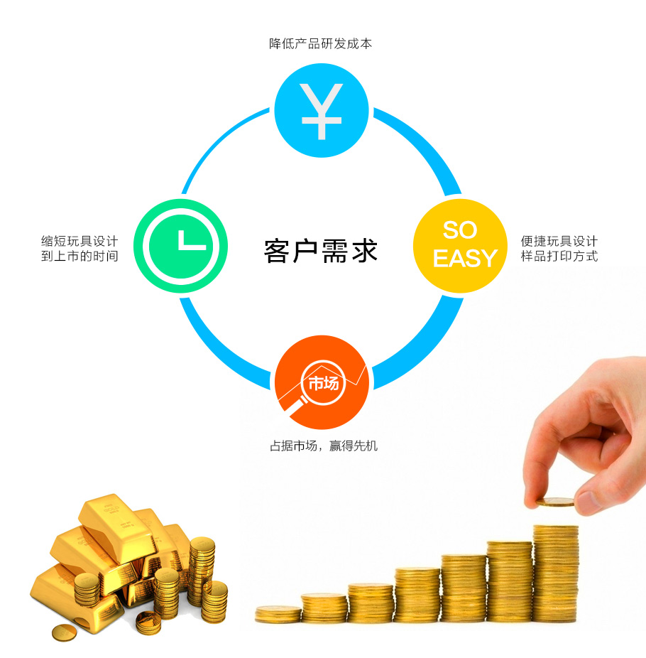 2.玩具新品開發(fā):3D打印能實(shí)現(xiàn)一些很復(fù)雜的結(jié)構(gòu)和機(jī)械,開發(fā)出傳統(tǒng)制造方式無法完成的玩具形式,為玩具行業(yè)帶來新的活力與利潤增長點(diǎn)。